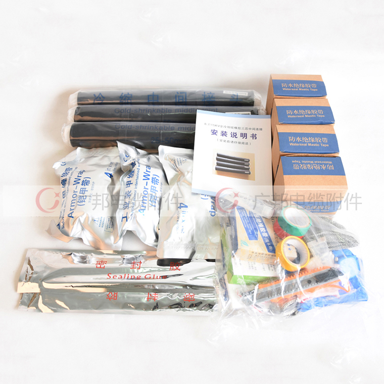 10kv冷缩电缆中间接头的型号有JLS-10/3 x 25-50、70-120、150-240、300-400。