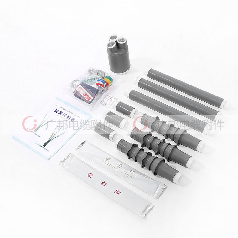 6、终端主体配合冷收缩分支指套、冷收缩绝缘管和冷收缩端子密封管;中间接头采用三层防水密封工艺、对附件有着优良的密封防潮性能。